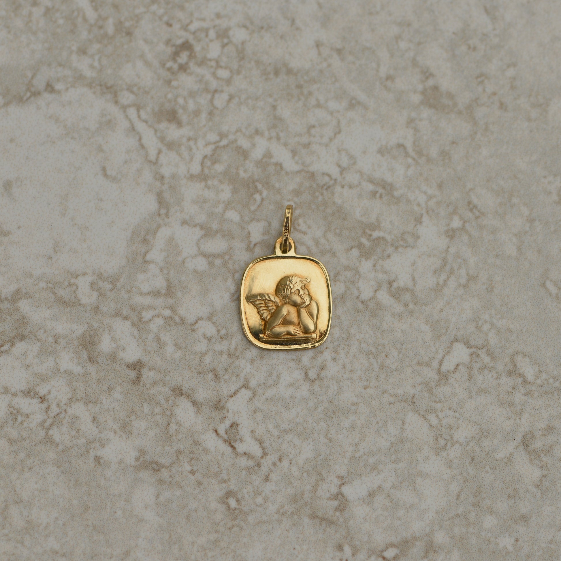 An adorable little angel/cherub medallion, with beautiful detailing in the cherub's hair and wings.