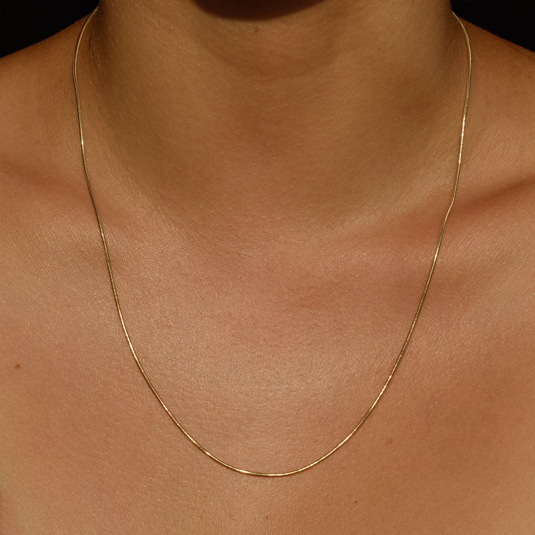Estate round snake chain with a spring ring clasp. 1.1 mm width.
