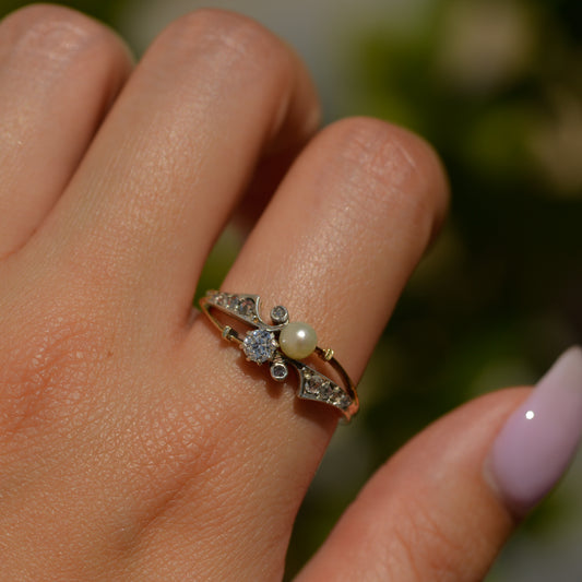 Edwardian Pearl & Diamond Toi et moi Ring