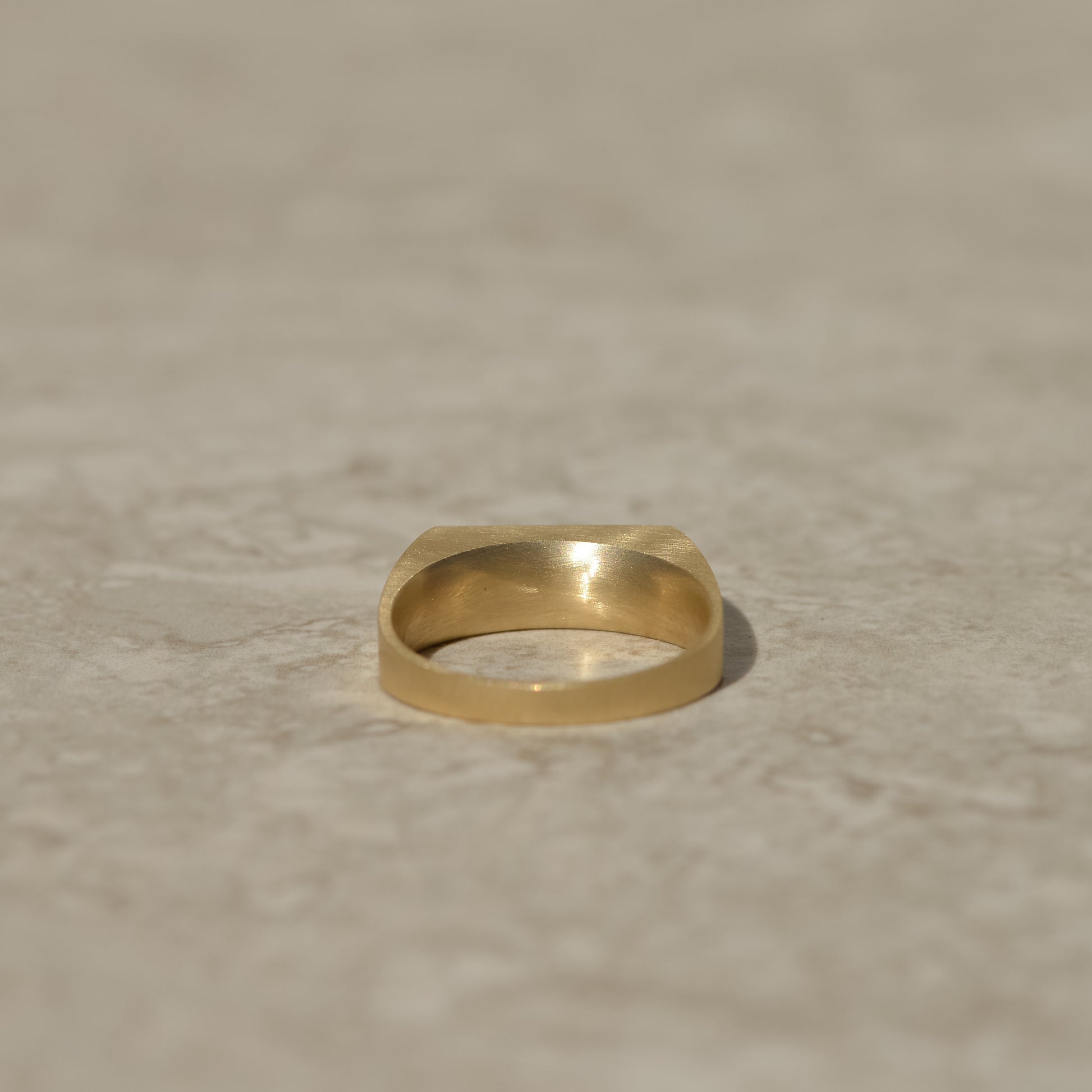 The inside of the ring is curved for a comfortable fit, and the gold is hand-brushed for a matte finish.