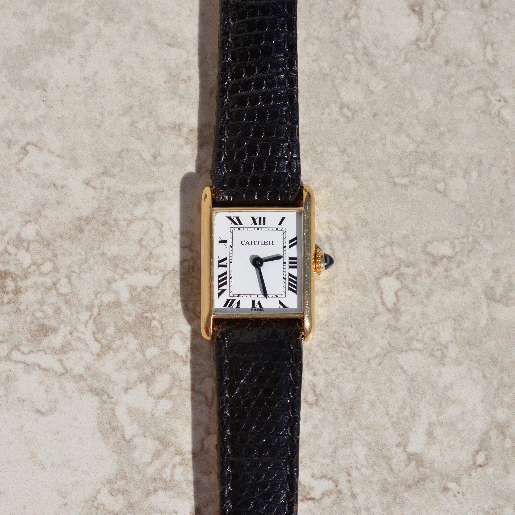 Early 1980s Cartier Tank Louis, 18k solid gold with "Paris" dial.