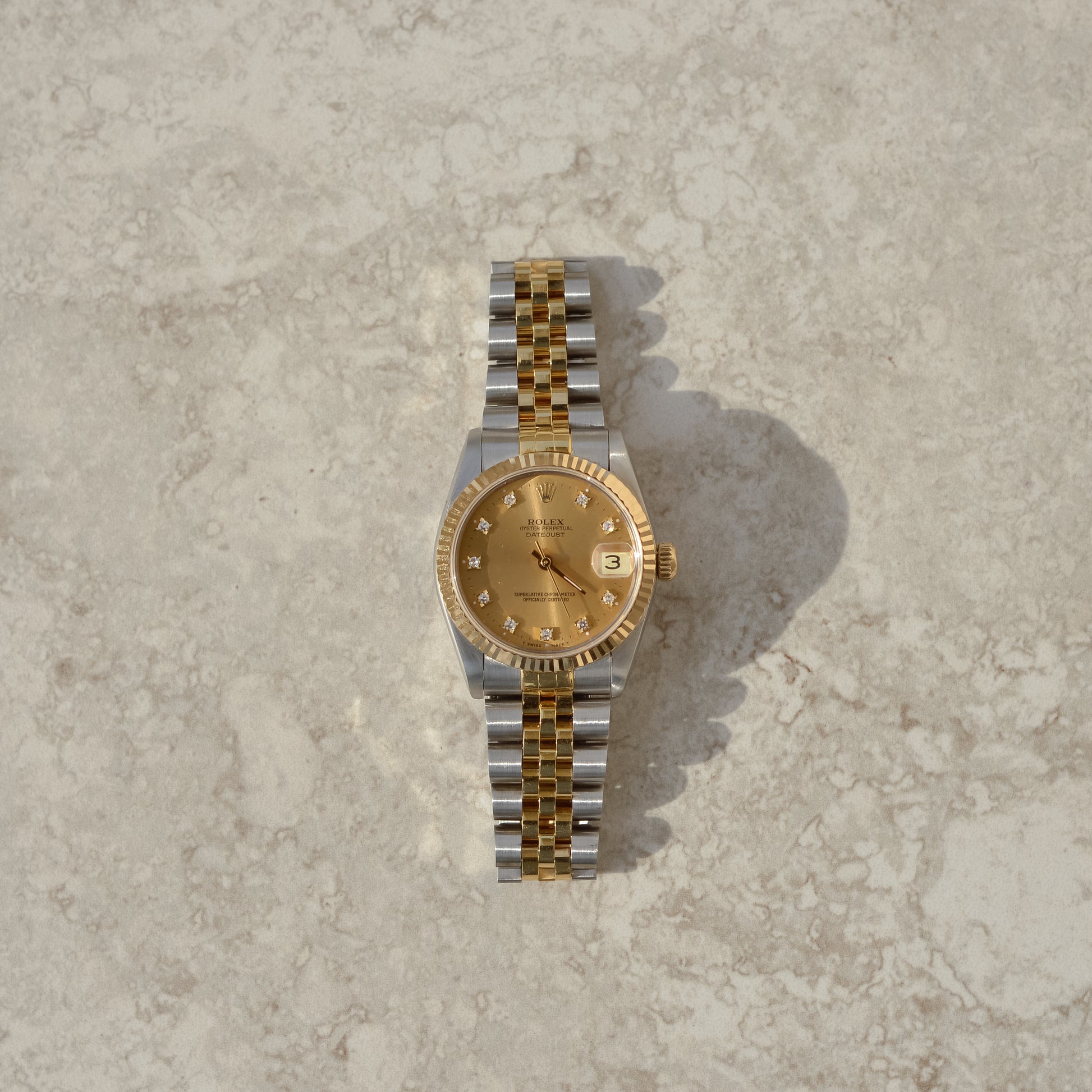 Vintage Rolex Datejust 31, champagne diamond dial, reference 68273