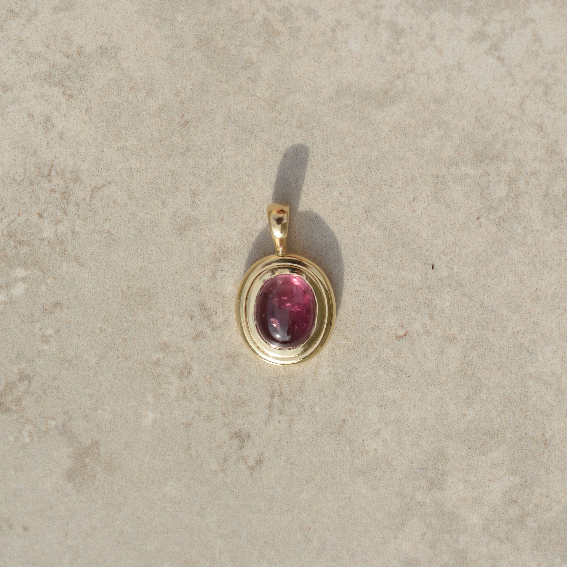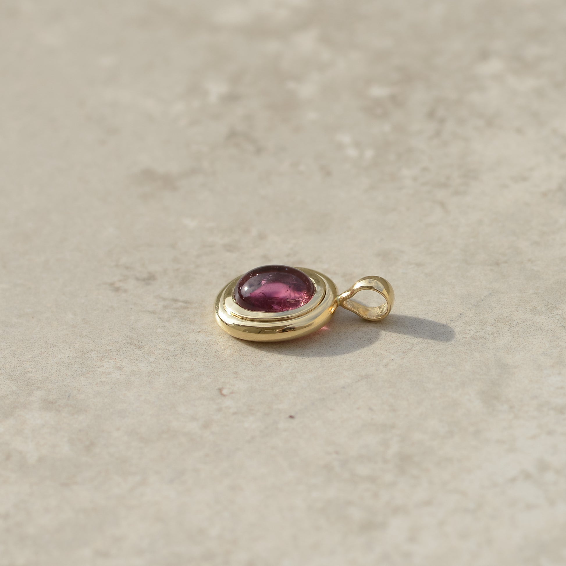 09: Bubble Bezel Pendant, pink tourmaline cabochon