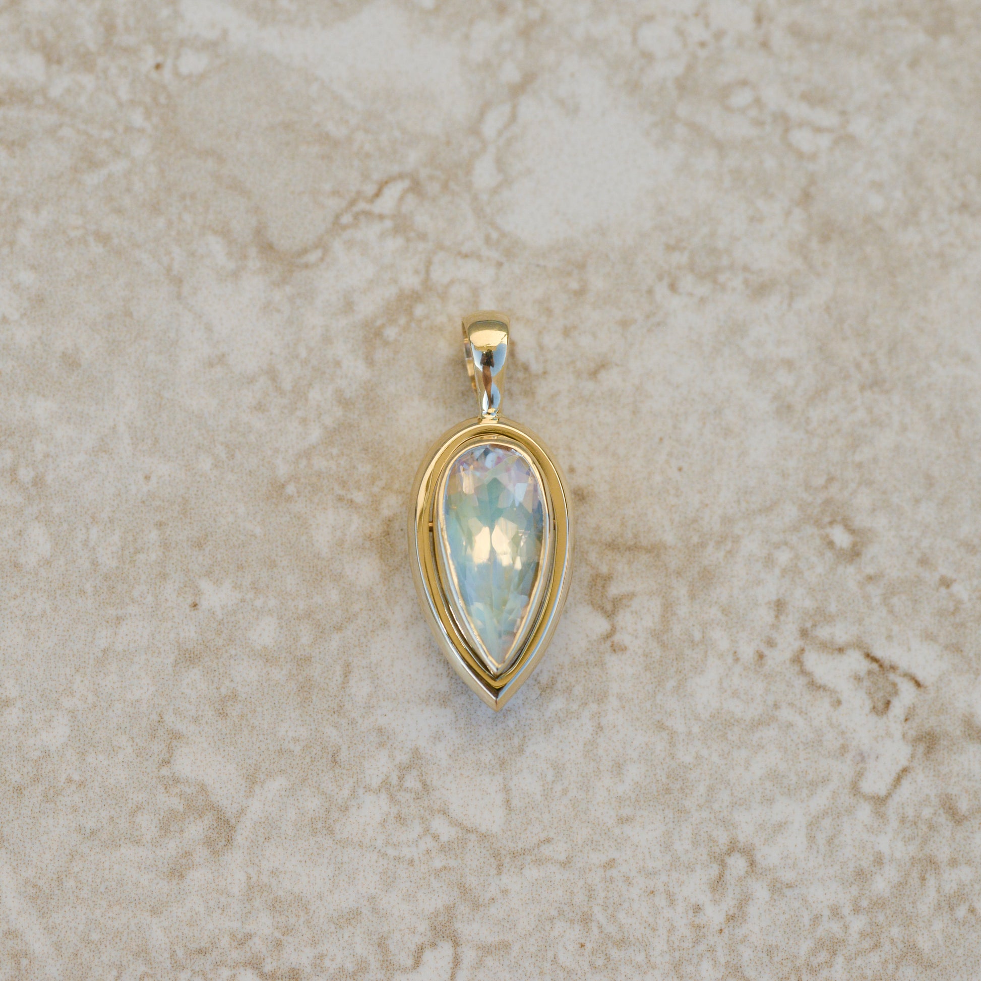 09: Bubble Bezel Pendant, rainbow moonstone