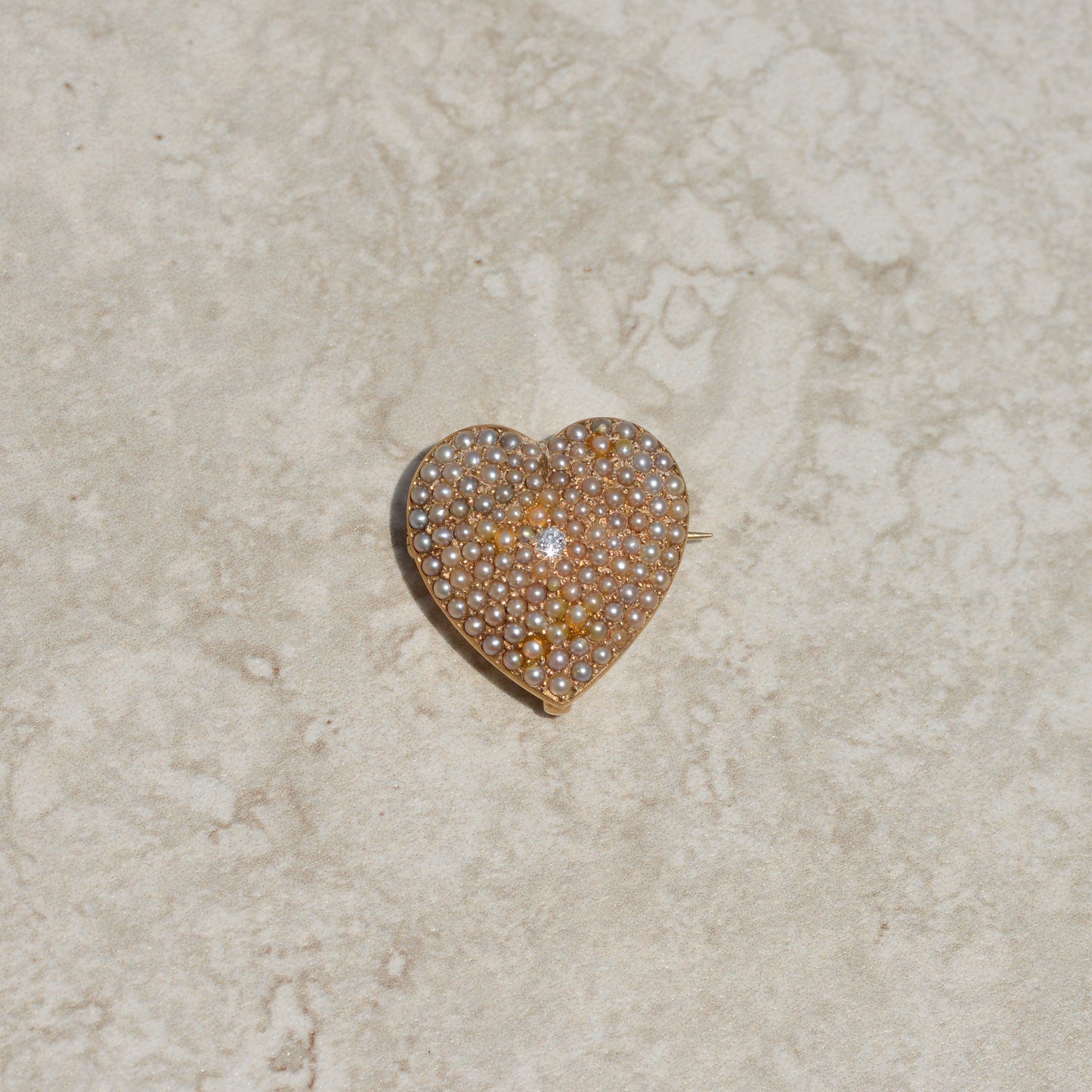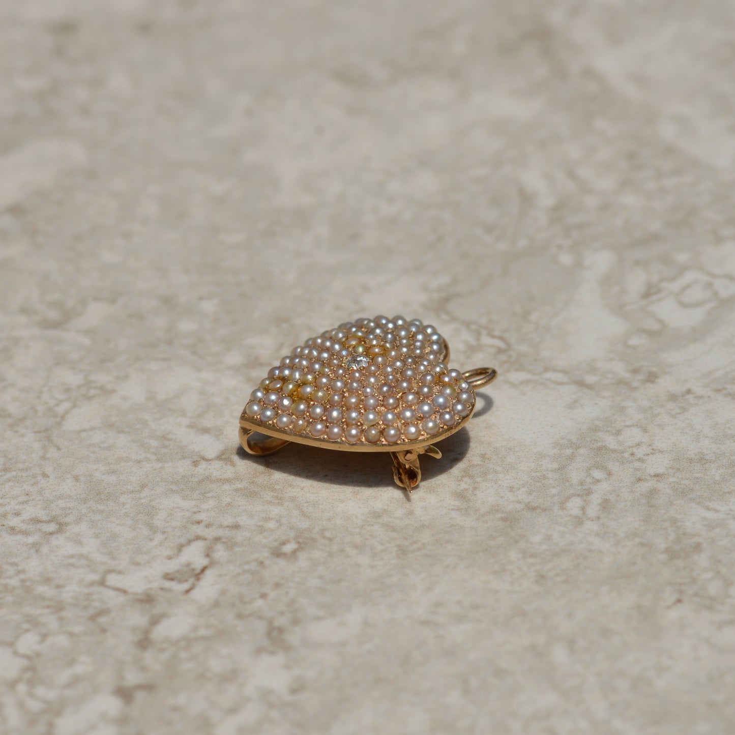 Antique Seed Pearl & Diamond Heart Pendant/Brooch