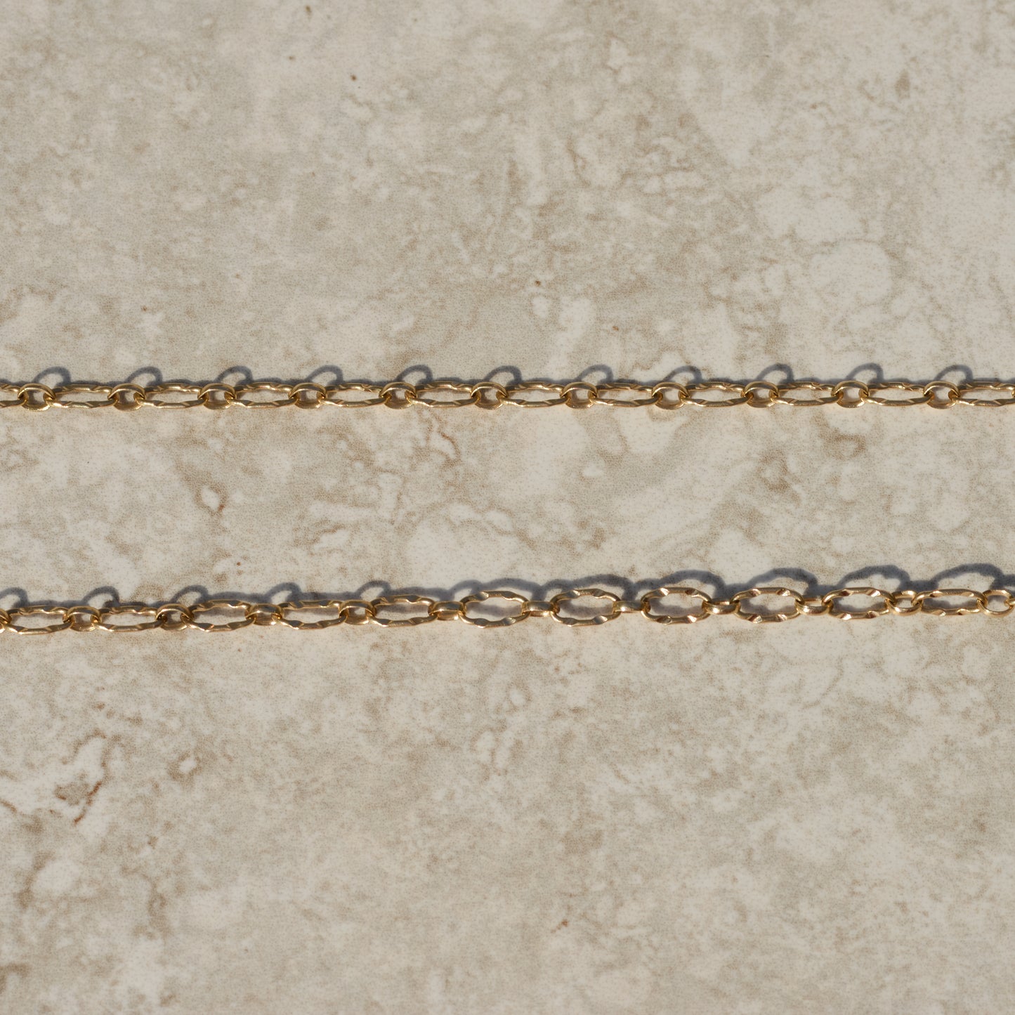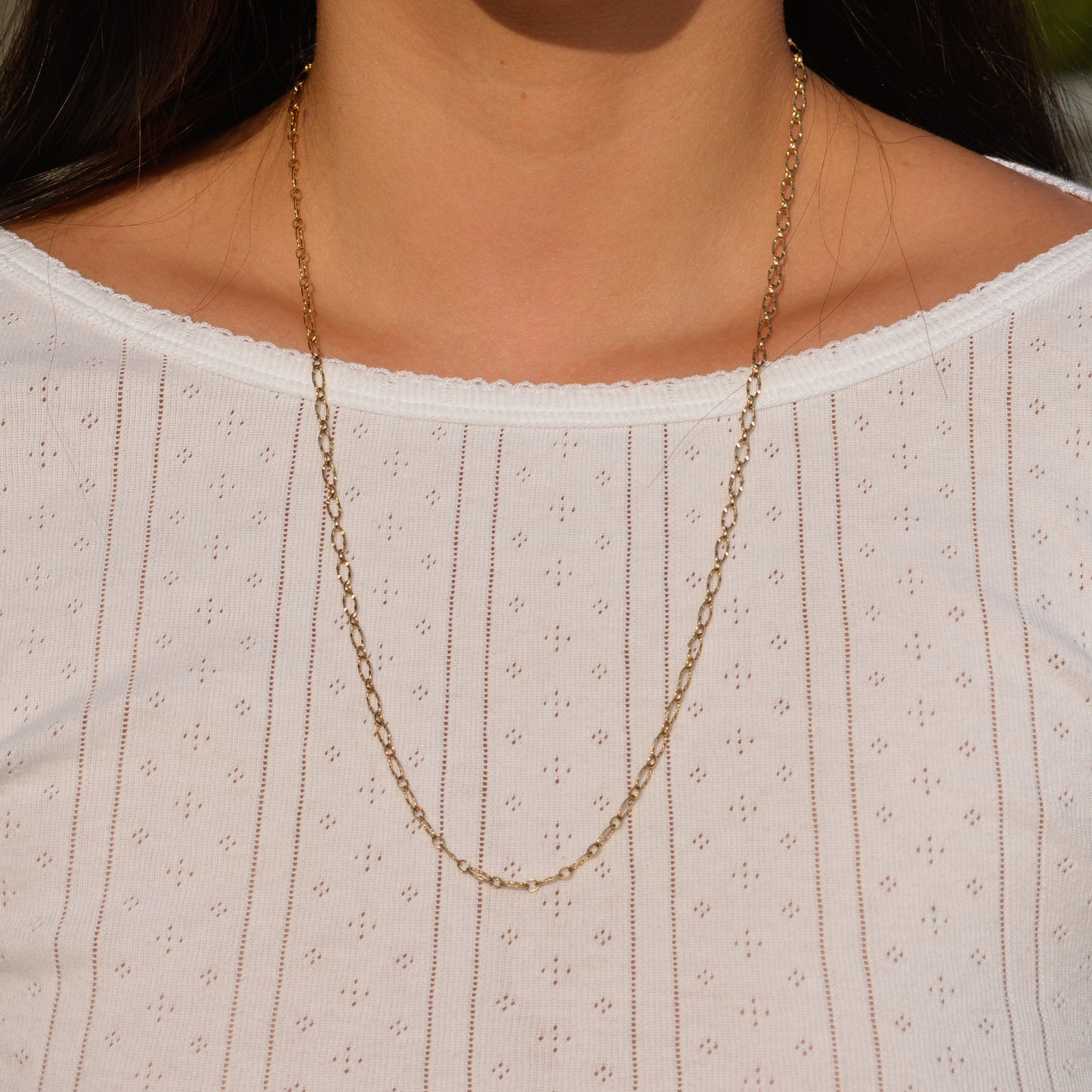 Estate fancy chain with alternating textured larger and smaller loops, finished with a spring ring clasp. 3.46 mm width.