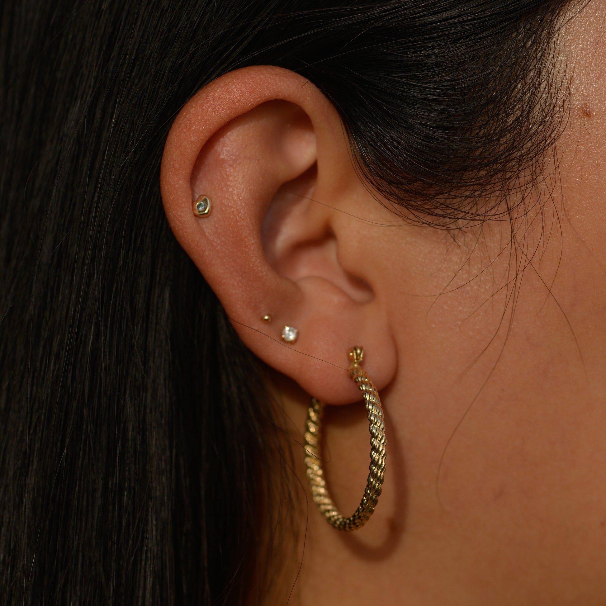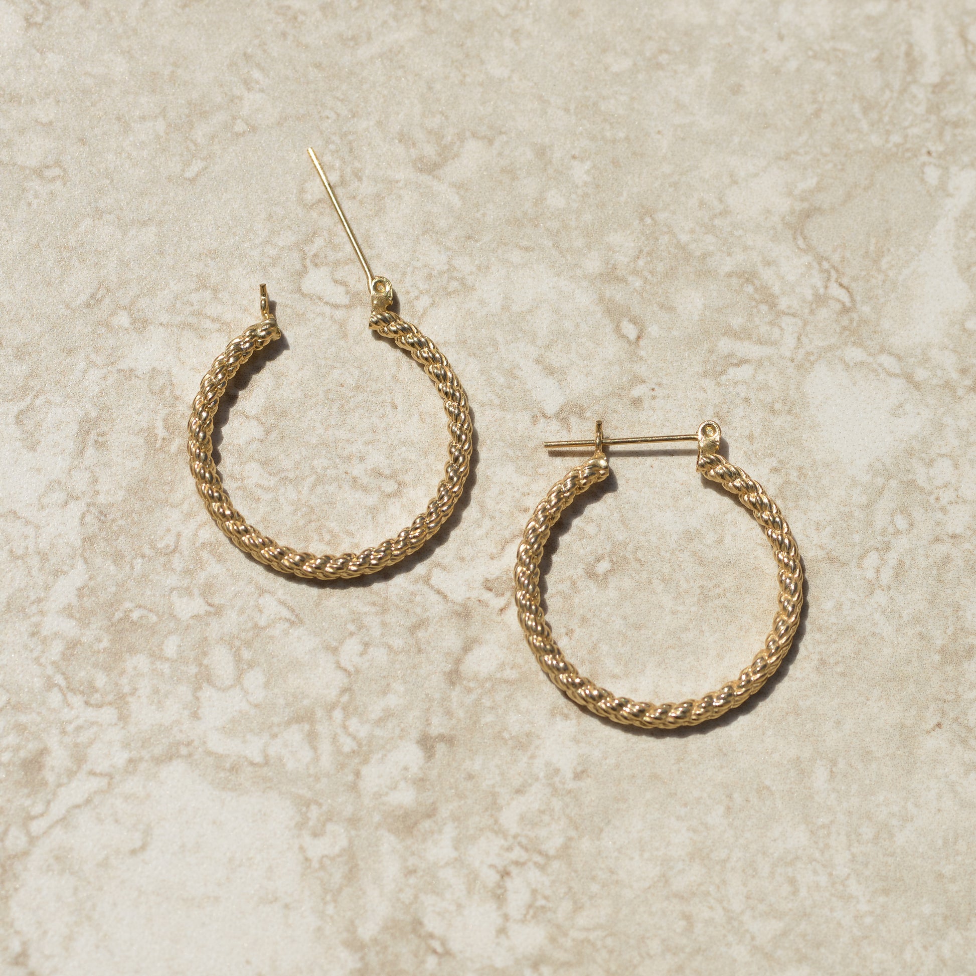 Estate rope textured hoop earrings. 3 mm thick hoops.