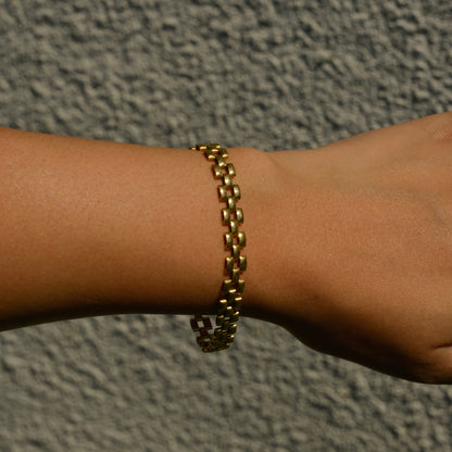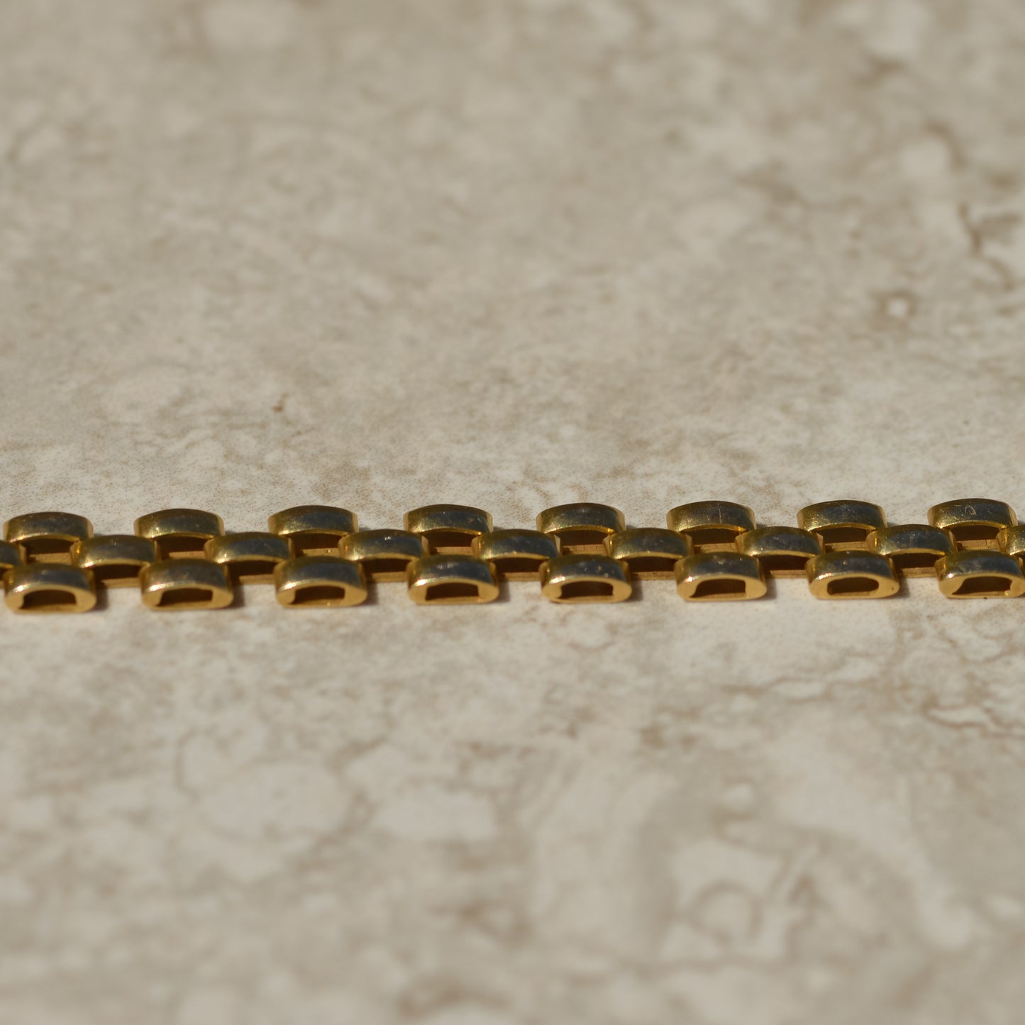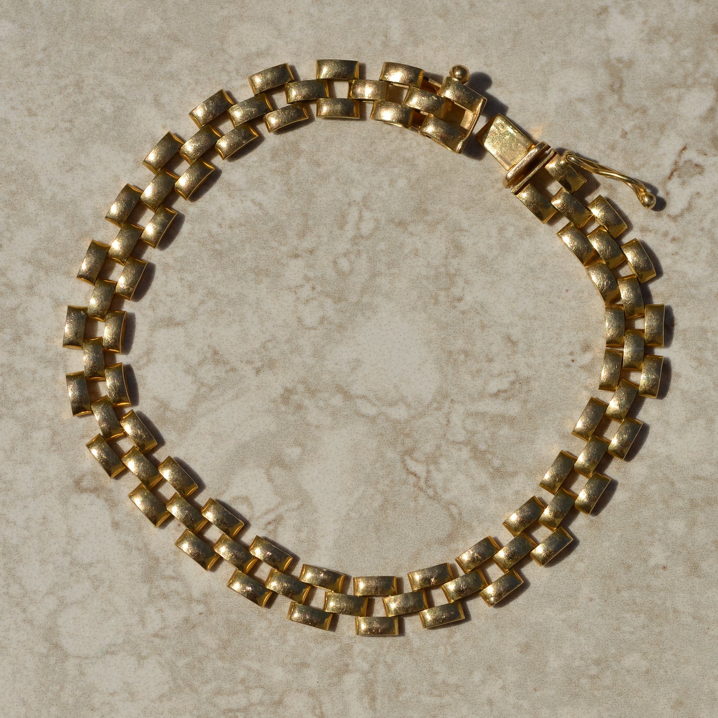 Vintage panther bracelet with watch band style links. Finished with a sliding locking clasp. 6.7 mm width.