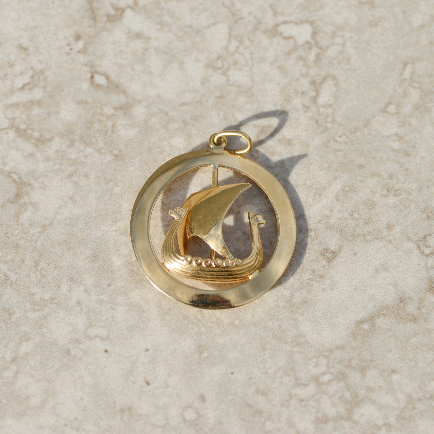 Vintage charm with a little 3D viking ship in the center of a medallion.
